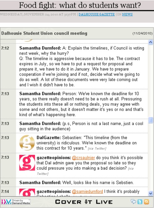 I live-blogged the DSU meeting when they were deciding whether or not to accept Dal's food contract.