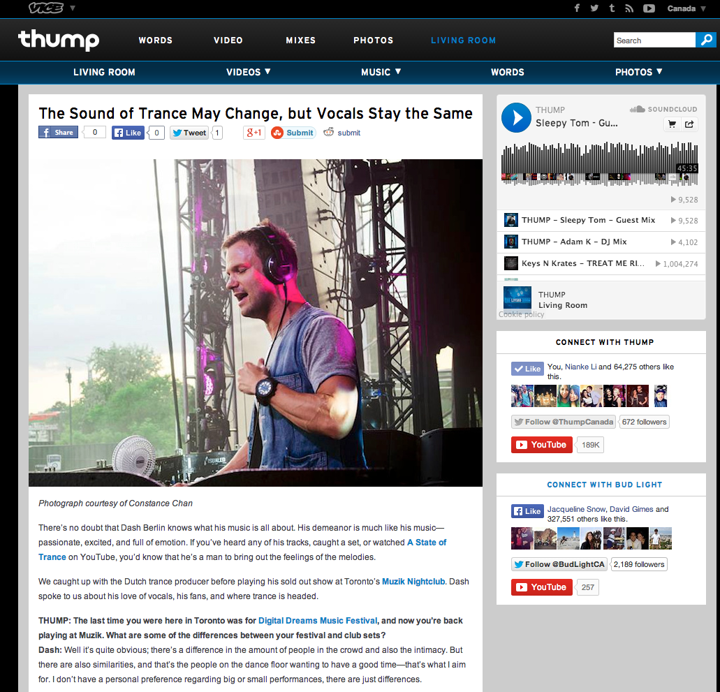 For my first piece with THUMP Canada, I got the chance to sit down with one of my favourite DJs, Dash Berlin. We talked about his unique sound and his incredible festival sets, which I’ve personally been lucky to witness twice now.